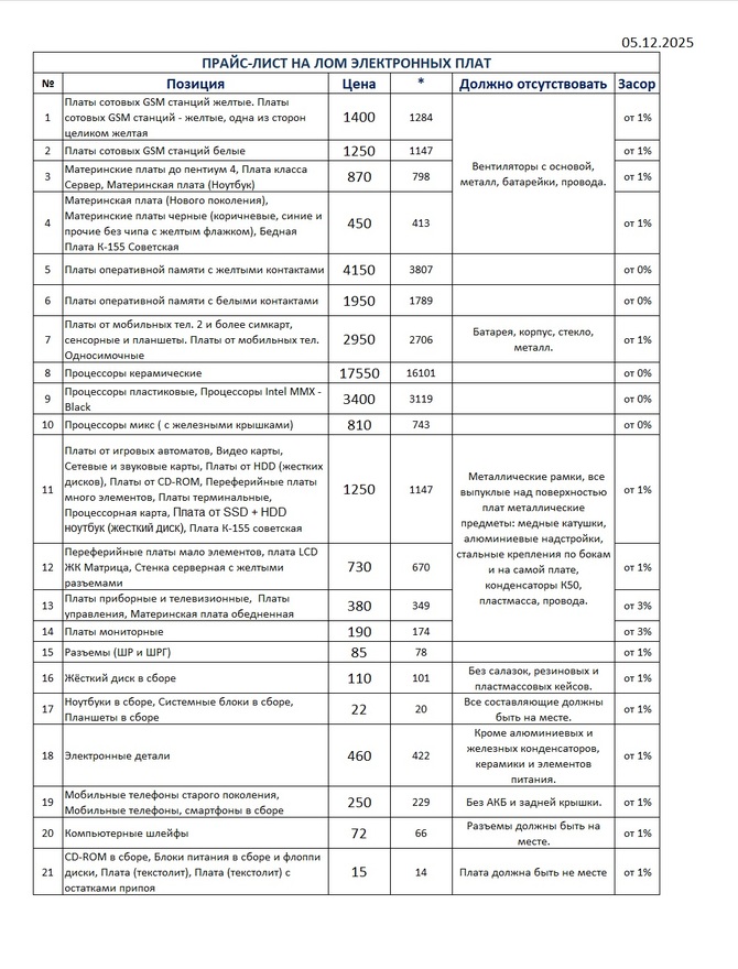 Цены на радиоэлектронный лом