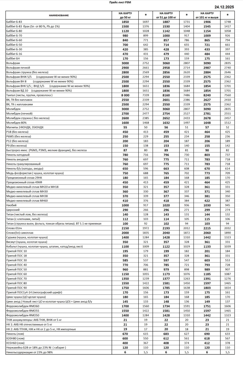 Цены на лом редкоземельных металлов